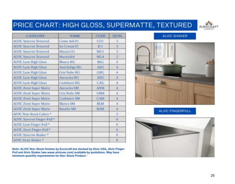 PRICE CHART: HIGH GLOSS, SUPERMATTE, TEXTURED