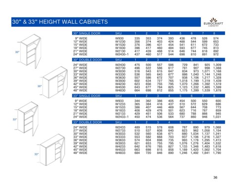 36” WIDE W3633 574 604 698 735 993 1,178 1,295 1,413