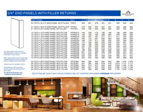 EDGEBANDED TO MATCH CABINET 13 7/8"D x 48"H END PANEL W\3"FILLER PFWE348 212 223 287 317 317 340 374 374