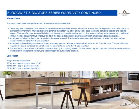 1. Doors may warp a small amount soon after installation because cabinets are taken from a controlled factory environment and placed in