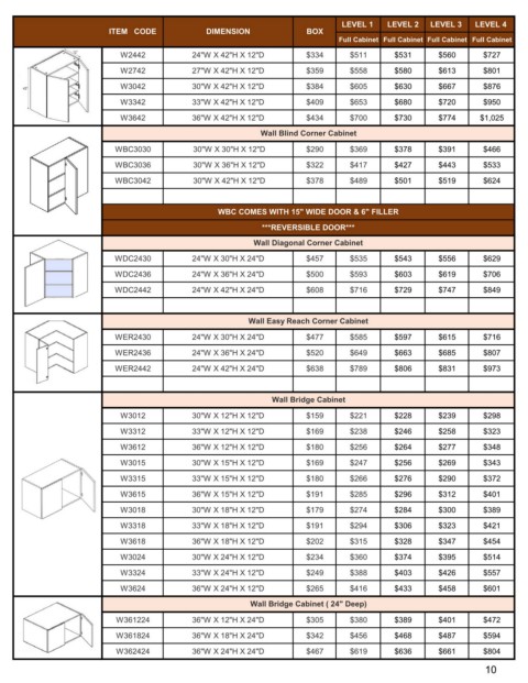 WBC3042 30"W X 42"H X 12"D $378 $489 $501 $519 $624