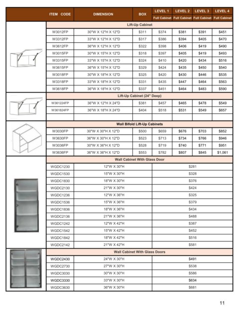 W3036FP 30"W X 36"H X 12"D $528 $719 $740 $771 $951