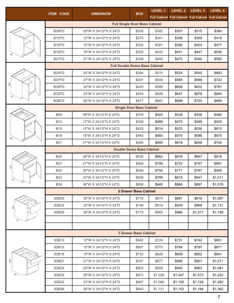 B36FD 36"W X 341/2"H X 24"D $477 $667 $688 $720 $899