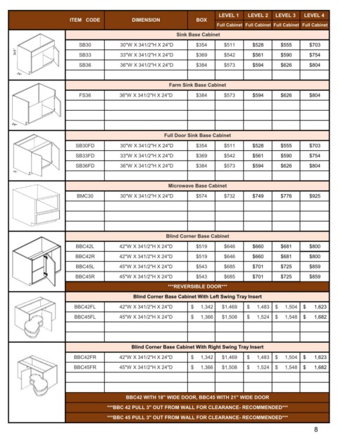 BBC42FL 42"W X 341/2"H X 24"D $ 1,342 $1,469 $ 1,483 $ 1,504 $ 1,623
